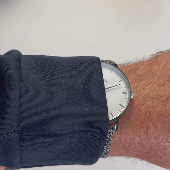 Strap material: Grey / black Perlon lined with full grain Italian leather